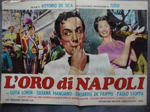 Vittorio De Sica (regista) Silvana Mangano e Totò in "L'oro di Napoli" Filmpode Fotobusta cinematografica. Con la partecipazione di Totò, con Sophia Loren, Eduardo De Filippo, Paolo Stoppa e Erno Crisa (49b/56b).