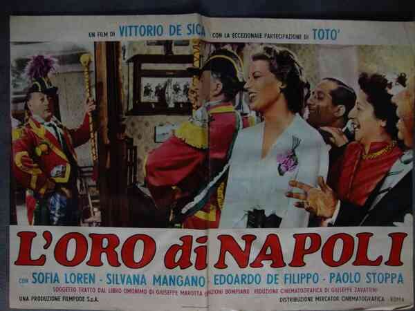 Vittorio De Sica (regista) Silvana Mangano e Totò in "L'oro di Napoli" Filmpode Fotobusta cinematografica. Con la partecipazione di Totò, con Sophia Loren, Eduardo De Filippo, Paolo Stoppa e Erno Crisa (49b/56b).