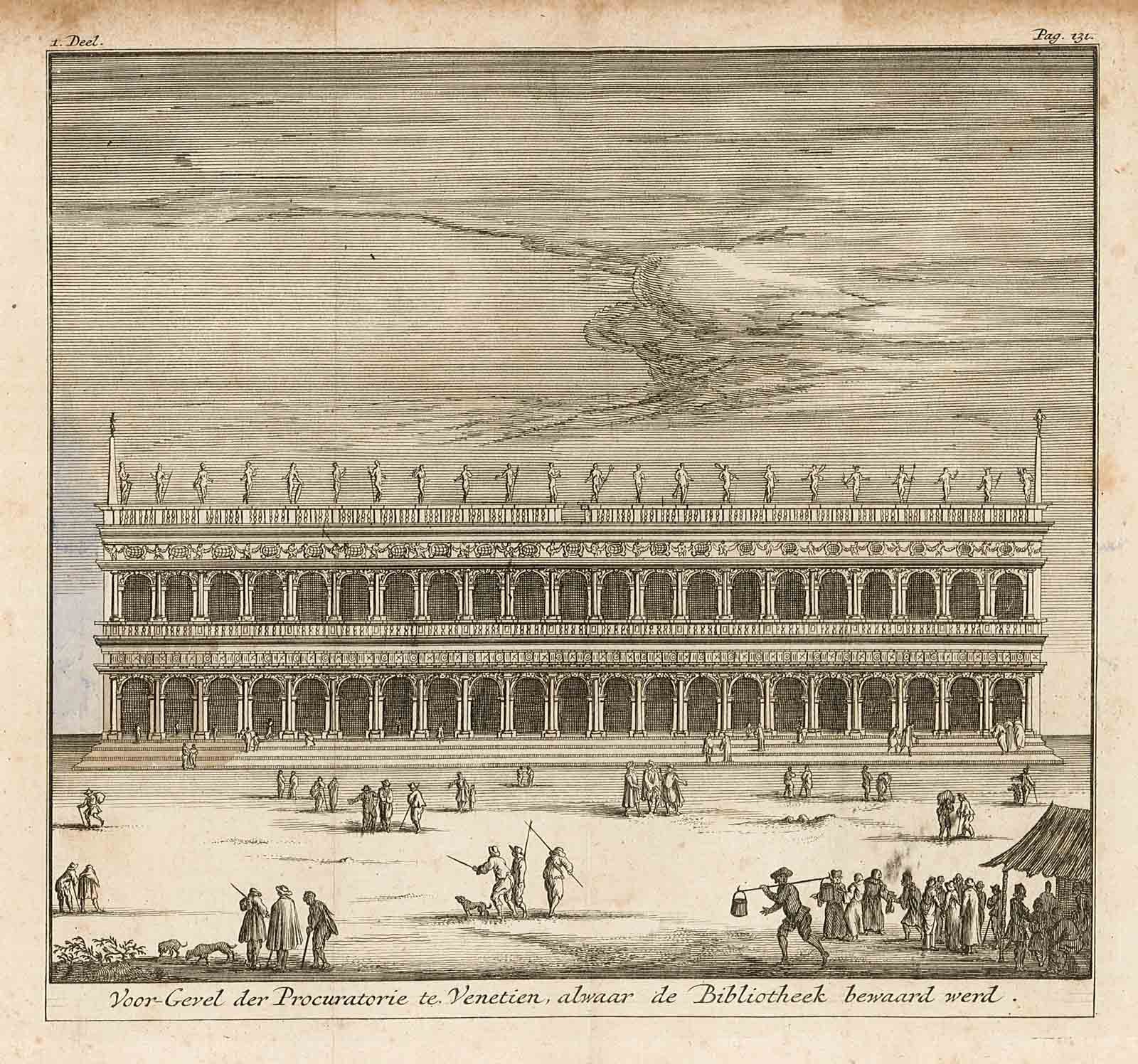 Voor-Gevel der Procuratorie te Venetien, alwaar de Bibliotheek bewaard werd
