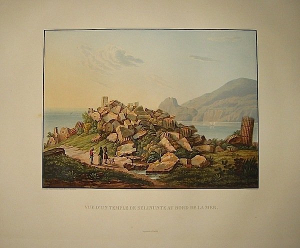 Acquatinta originale (cm. 29x21) tratta dal ‘Voyage pittoresque en Sicile’ di Achille Etienne Gigault de la Salle. Splendida coloritura coeva eseguita a spese dell’editore Firmin Didot. Ottimo esemplare ad ampi margini. Rara tiratura.