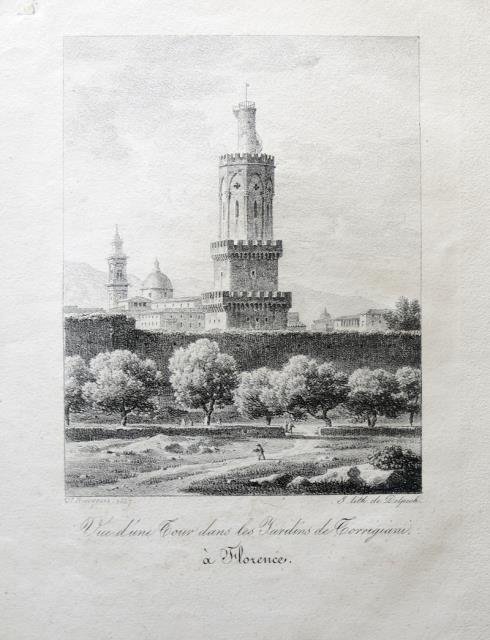 1830 circa. Da un disegno del 1827, litografia in b/n, cm 12,5 x 16,1 (la parte figurata).Leggermente rifilato il margine superiore, buono stato.