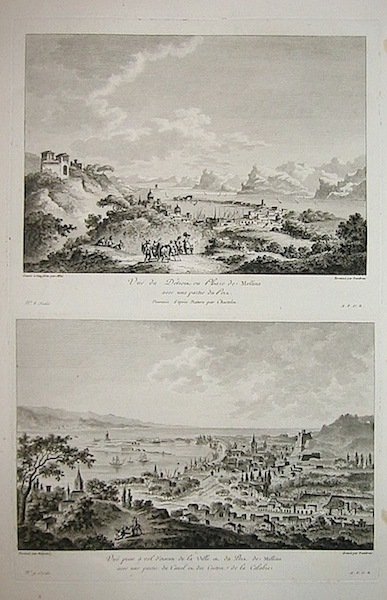 Coppia di acquaforti originale (cm. 24,5x19,5 ciascuna) su un foglio, tratte dal ‘Voyage pittoresque ou description des Royaumes de Naples et de Sicile’ dell’abate di Saint-Non. Ottimo esemplare.
