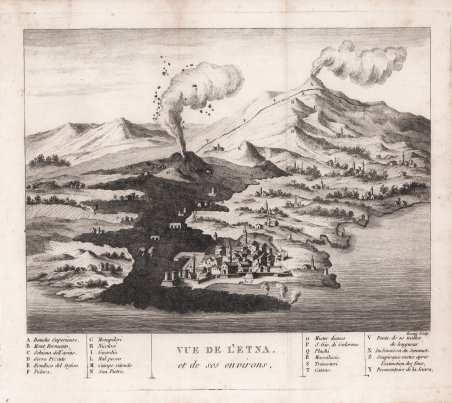 Veduta tratta dal celebre Voyages Dans Les Deux Siciles Et Dans Quelques Parties Des Apennins, Par Spallanzani, Professeur d'Histoire naturelle dans l'université de Pavie. Traduits e l'Italien par G. Toscan, Bibliothécaire du Museum national d'Histoire naturelle de Paris, avec des Notes du cit. Faujas-de-St.-Fond. A Paris, Chez Maradan, Libraire, rue Pavée-André-des-Arcs, n°. 16. An VIII. 1799 di Lazzaro Spallanzani. Traduzione francese dell’opera stampata per la prima volta nel 1795 a Berna, contiene una variante delle 7 tavole raffiguranti le Isole Eolie e l’Etna che erano state incise da L. Anderloni. Lazzaro Spallanzani (1729-1799) è stato un naturalista, biologo e fisiologo italiano che ha dato importanti contributi allo studio sperimentale delle funzioni corporee, della riproduzione animale, nonché alla geologia e alla vulcanologia. Nel 1754, all'età di 25 anni, divenne professore di logica, metafisica e greco all'Università di Reggio. Nel 1762 fu ordinato sacerdote e nel 1763 si trasferì a Modena. Nel 1769 divenne titolare della cattedra di Storia naturale all'Università di Pavia. ' Spallanzani divenne anche direttore del museo dell'Università di Pavia, dove ampliò notevolmente le collezioni con esemplari raccolti durante i suoi numerosi viaggi nella regione mediterranea. Nel giugno 1768 Spallanzani fu eletto Fellow della Royal Society e nel 1775 fu eletto membro straniero della Royal Swedish Academy of Sciences. Nei sei volumi dei Voyages dans les Deux Siciles, Lazzaro Spallanzani offre un contributo fondamentale allo sviluppo della scienza vulcanologica. Le sue indagini sono state condotte sui vulcani attivi dell'Italia meridionale (in particolare nelle Isole Eolie, sull'Etna e sul Vesuvio). Oltre a contribuire allo sviluppo della teoria del vulcanismo, interpreta il processo di formazione della pomice. Descrive i processi del vulcanismo, l'attività sismica associata, la mineralogia e le rocce associate ai vulcani ed è stato il primo ad applicare metodi sperimentali per descrivere la formazione della pomice e di altre rocce e minerali. Acquaforte, in buono stato di conservazione. View taken from Voyages Dans Les Deux Siciles Et Dans Quelques Parties Des Apennins, Par Spallanzani, Professeur d'Histoire naturelle dans l'université de Pavie. Traduits e l'Italien par G. Toscan, Bibliothécaire du Museum national d'Histoire naturelle de Paris, avec des Notes du cit. Faujas-de-St.-Fond. A Paris, Chez Maradan, Libraire, rue Pavée-André-des-Arcs, n°. 16. An VIII. 1799. French translation of the work first printed in 1795 in Bern, contains a variant of the 7 plates depicting the Aeolian Islands and Etna that were engraved by L. Anderloni. Lazzaro Spallanzani (1729 –1799) was an Italian naturalistt, biologist and physiologist who made important contributions to the experimental study of bodily functions, animal reproduction, as well as to geology and volcanology. In 1754, at the age of 25, he became professor of logic, metaphysics snd Greek in the University of Reggio. In 1762 he was ordained as a priest, and in 1763 moved to Modena. He became the Chair of the Natural History Department at the University of Pavia in 1769. ' Spallanzani also became director of the museum at the University of Pavia, where he greatly expanded the collections with specimens collected during his many travels in the Mediterranean region. In June 1768 Spallanzani was elected a Fellow of the Royal Society, and in 1775 was elected a foreign member of the Royal Swedish Academy of Sciences. In the six volumes of the Voyages dans les Deux Siciles, Lazzaro Spallanzani offers a major contribution to the ' development of the science of volcanology. His surveys were carried out on active volcanos of southern Italy (in particular in the Aeolian Islands and on Mt. Etna and Vesuvius).In addition to contributing to the development of the theory of volcanism, he interprets the process of formation of pumice. He describes the processes of volcanism, the associated seismic activity, and the mineralogy and rocks associated with the volcanoes and was the first to apply experimental methods to describe the formation of pumice and other rocks and minerals. Etching, some foxing, otherwise good condition. Cfr.