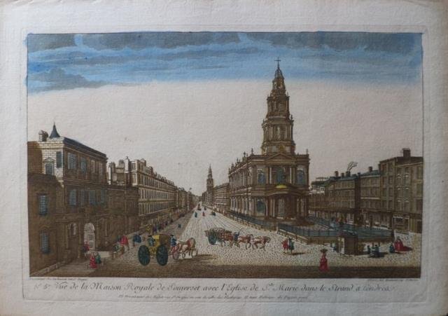Vue de la Maison Royale de Somerset avec l'Eglise de S.te Marie dans le Strand à Londre.