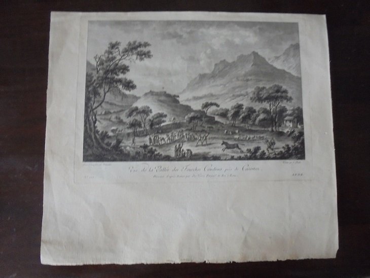 Tratta dal Saint - Non, "Voyage Pittoresque. Incisione all`acquaforte di mm. 260 x 170 circa (=lxh) più margini. Firmata in basso a sinistra: Desmoulins e a destra: De Ghendt. Bella veduta con molti personaggi in primo piano.