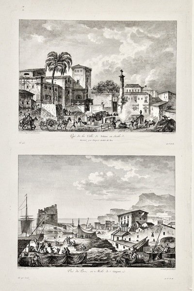 Vue de la ville de Palma en Sicile. (Insieme a sullo stesso foglio:) Vue du port ou mole de Girgenti .