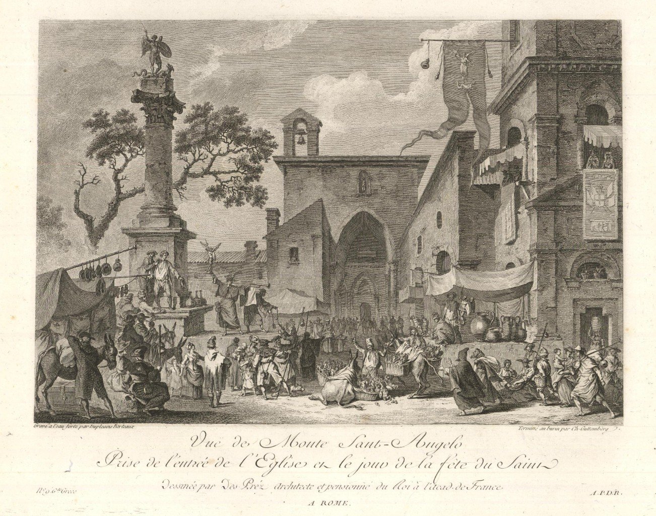 Bella veduta del paese, animata da molti personaggi. Tratta dalla prima edizione della monumentale opera edita da Jean-Claude Richard de Saint-Non, meglio noto come Abate di Saint-Non " Voyage ou Description des Royaumes de Naples et de Sicilie ". Pubblicata a Parigi dal 1781 al 1786.
