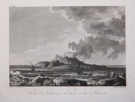 Veduta pubblicata nel ' Voyage Pittoresque ou description des Royaumes de Naples et de Sicile, opera in 5 volumi per la prima volta stampati a Parigi tra 1781 e il 1786. Richard de Saint-Non conobbe, durante il suo viaggio a Roma, i due già celebri pittori francesi Jean Honoré Fragonard e Hubert Robert, con i quali prosegue il suo viaggio per tutto il paese. Da questa grande amicizia nasce l’idea e la collaborazione per l’ambizioso progetto di documentare graficamente tutti i principali monumenti dell’Italia Meridionale e della Sicilia. Da qui, tra il 1781 ed il 1786, con l’aiuto di numerosi ed importanti architetti, pittori ed incisori, venne alla luce il Voyage Pittoresque ou description des Royaume de Naples et de Sicilie, opera composta di cinque volumi che uscirono annualmente. Incredibile sforzo tipografico, l’opera raccoglie quasi per intero gli appunti di viaggio del Saint-Non, adeguatamente assemblati e corretti; il corpus grafico è composto di ben 542 incisioni all’acquaforte e bulino, opera dei principali artisti di riproduzione del periodo. Da un punto di vista editoriale l’iniziativa riscuote immediatamente un grandissimo successo: il libro diviene un vero e proprio modello tipografico, sul quale sono basate diverse pubblicazioni dell’impero napoleonico. Dal punto di vista artistico le vedute, i paesaggi e le rovine conservano, e non può essere altrimenti, lo stile pittorico e romantico del Fragonard, del Robert, del Desprez, e di tutti gli altri artisti che collaborano nella realizzazione di questa monumentale opera. Il notevole successo commerciale della raccolta è testimoniato dalla ristampa, tra il 1795 ed il 1798, delle sole tavole pittoriche. Un’ulteriore edizione è stampata nel 1829 dal Dufour. Esemplare tratto dal ' Voyage Pittoresque, ' prima edizione con l’acronimo del privilegio reale. ' Acquaforte, stampata su carta vergata coeva, leggere ossidazioni, per il resto in ottimo stato di conservazione. View taken from the Voyage Pittoresque ou description des Royaume de Naples et de Sicilie by Richard de Saint-Non. During his trip to Rome, Richard de Saint-Non met two already famous French painters, Jean Honoré Fragonard and Hubert Robert, with whom he travelled along Italy. Their friendship led to the cooperation for the ambitious project of depicting all the main monuments of Southern Italy and Sicily. Between 1781 and 1786, with the assistance of many contemporary artists, he realized the Voyage Pittoresque ou description des Royaume de Naples et de Sicilie, a five volumes work published annually. As a result of a great typographical effort, the work is a collection of Sain-Non’s travelling notes; the graphic part is made up of 542 engravings and etchings, realized by the most important artists of the period. The work is immediately successful, for the book became a new typographical model for the following publications. From an artistic point of view, the views, landscapes and antiquity keep the Romantic pictorial style of Fragonard, Robert, Desprez and all the other artists that took part in this monumental project. The re-issue, between 1795 and 1798, of the pictorial plates, witnesses the great success of this project. A re-issue of the whole work was edited in 1829 by Dufour. Example taken from the first edition of the work, with the acronym of the Royal priviledge. ' Etching, printed on contemporary laid paper, light foxing, otherwise good condition. Cfr.