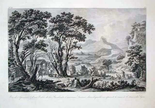 Veduta della valle presa da un punto panoramico, ove si sta tenendo una lezione di pittura