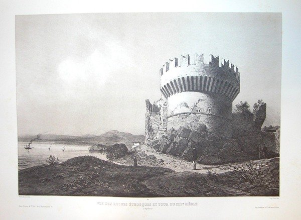 VUE DES RUINES ETRUSQUES ET TOUR DU XIII° SIECLES. Populonia. Riproduzione tratta dall'album "La Toscane" di André Durand.