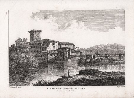 Veduta tratta dal ' Recueil de Vues et fabriques pittoresques d'Italie, Dessinées d'apres Nature, Et publiées par C. Bourgeois, Peintre. Questo album di incisioni tratte da disegni di Charles Constant Bourgeois, incisi da Guyot e Lameau, comprende per la maggior parte vedute di Roma e dei suoi dintorni (Tivoli, Marino, Subiaco, Montecassino, Anagni, Grottaferrata, Frascati, Genzano, Castel Gandolfo, ecc.), ma anche di Firenze, Pisa, Siena, Genova, Caserta e Napoli. L’opera, il cui frontespizio non fu mai stampato, uscì a dispense come raccolta di stampe e fu edita dallo stesso Bourgeois a Parigi, con indirizzo ' Mousé des Artistes, rue de Sorbonne. Incisione in rame, impressa su carta vergata coeva, piccole ossidazioni, per il resto in buone condizioni. Florent-Constant Bourgeois, detto “Bourgeois du Castelet” era originariamente un ufficiale militare. Bourgeois si dedicò esclusivamente all'arte a partire dalla metà degli anni '90, perfezionando la sua formazione nello studio di Jacques-Louis David, dove si specializzò in paesaggi e divenne soprattutto uno straordinario disegnatore; Paul Marmottan, nella sua "Ecole française de peinture, 1789-1830", fa riferimento alla sua " ' grande pureté de style et l’exécution brillante de ses dessins, la plupart très remarquables, notamment ceux au lavis". Molto ricercato e apprezzato durante la sua vita, Bourgeois ha ricevuto numerosi premi e riconoscimenti artistici, una casa al Louvre e la Legion d'onore nel 1827. Viveva al numero 3 di quai Malaquais a Parigi. La sua attività di pittore è oggi meno conosciuta, eppure espose quadri in quasi tutti i Salon dal 1791 al 1830, con solo vedute dell'Italia per il periodo dalla Rivoluzione al Consolato. Bibliografia Brunet I, 1178; Cohen I, 183; Graesse, I 512. View taken from the ' Recueil de Vues et fabriques pittoresques d'Italie, Dessinées d'apres Nature, Et publiées par C. Bourgeois, Peintre. This album of engravings taken from drawings by Charles Constant Bourgeois, engraved by Guyot and Lameau, includes mostly views of Rome and its environs (Tivoli, Marino, Subiaco, Montecassino, Anagni, Grottaferrata, Frascati, Genzano, Castel Gandolfo, etc.), but also of Florence, Pisa, Siena, Genoa, Caserta and Naples. The work, whose frontispiece was never printed, came out in handouts as a collection of prints and was edited by Bourgeois himself in Paris, with address ' Mousé des Artistes, rue de Sorbonne. Florent-Constant Bourgeois, known as "Bourgeois du Castelet," was originally a military officer. Bourgeois devoted himself exclusively to art from the mid-1790s, perfecting his training in Jacques-Louis David's studio, where he specialized in landscapes and became above all an extraordinary draughtsman; Paul Marmottan, in his "Ecole française de peinture, 1789-1830," refers to his " grande pureté de style et l'exécution brillante de ses dessins, la plupart très remarquables, notamment ceux au lavis." Highly sought after and appreciated during his lifetime, Bourgeois received numerous artistic prizes and awards, a house in the Louvre, and the Legion of Honor in 1827. He lived at No. 3 quai Malaquais in Paris. His activity as a painter is less well known today, yet he exhibited paintings in almost every Salon from 1791 to 1830, with only views of Italy for the period from the Revolution to the Consulate. Copperplate engraving, impressed on contemporary laid paper, minor oxidation, otherwise in good condition. Bibliografia Brunet I 1178. Cfr.