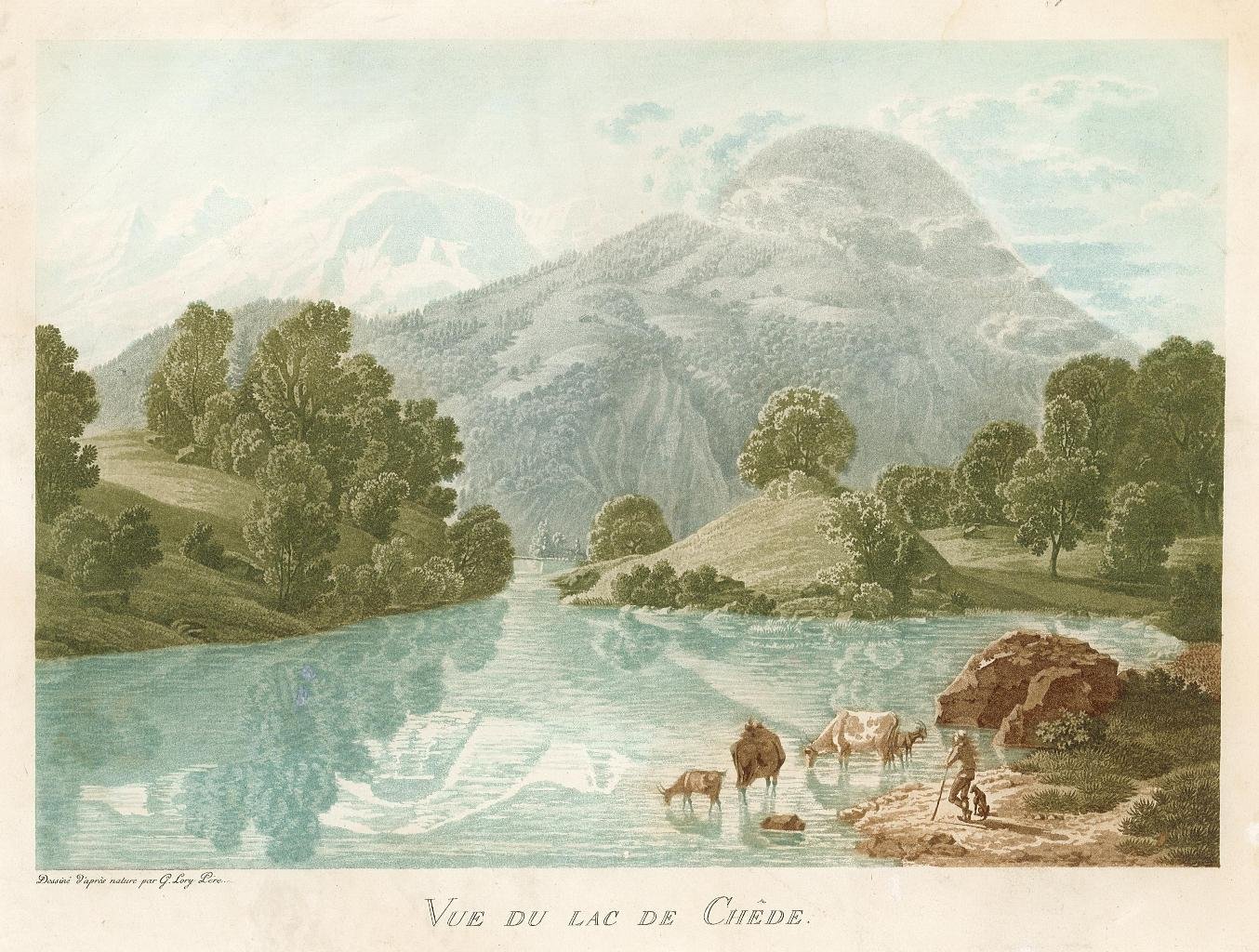 Veduta, antica ed originale, stampata a colori. Autore: Lory G. fils. Luogo: Monte Bianco. Anno: 1815. Tecnica: acquatinta. Dimensioni: 195x280 mm. Tratta dall'opera " Voyage Pittoresque aux Glaciers de Chamouni " stampata a Parigi da P. Didot l'aine. Mandasch n° 240 - Noussan " Monte Bianco Chamonix Courmayeur nelle antiche stampe " n° 88