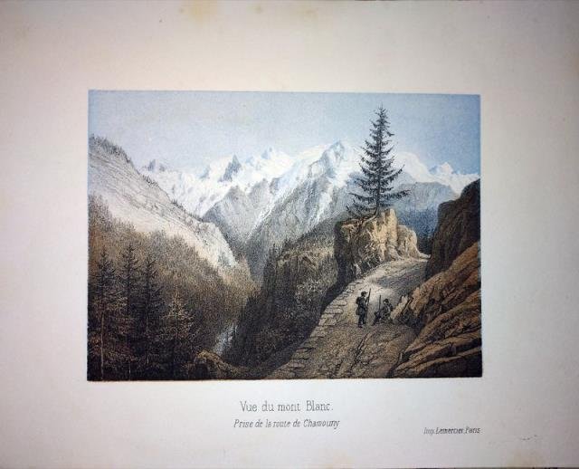 Vue du Mont Blanc. Prise de la route de Chamouny.