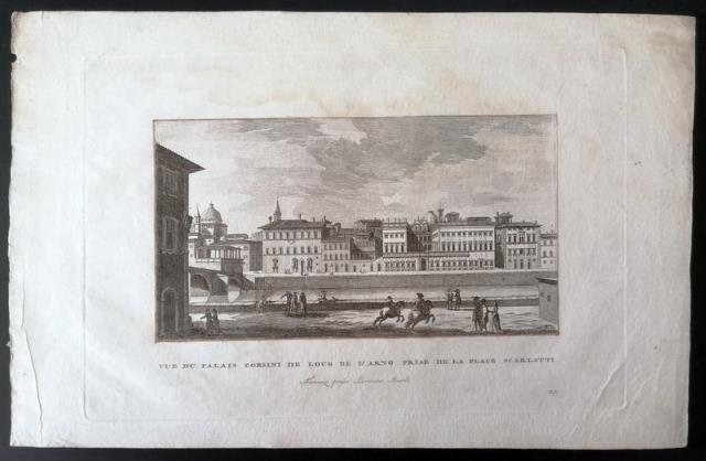 Firenze, 1840 circa. Incisione in rame all'acquaforte, b/n, cm 23,5 x 34,8 (alla lastra) più margini. Carta marginalmente gualcita con lieve alone al margine superiore, ampi margini, buona impressione. .