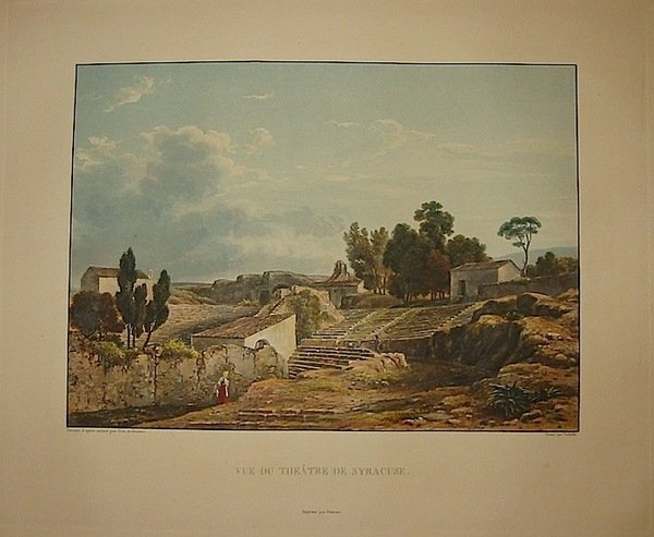 Acquatinta originale (cm. 40x21) tratta dal ‘Voyage pittoresque en Sicile’ di Achille Etienne Gigault de la Salle. Splendida coloritura coeva eseguita a spese dell’editore Firmin Didot. Ottimo esemplare ad ampi margini. Rara tiratura.
