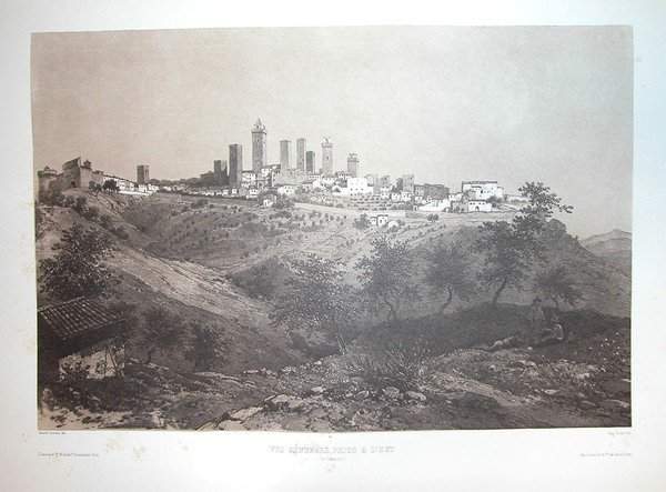 VUE GENERALE PRIS A L'EST. SAN GEMINIANO. Riproduzione tratta dall'album "La Toscane" di André Durand.