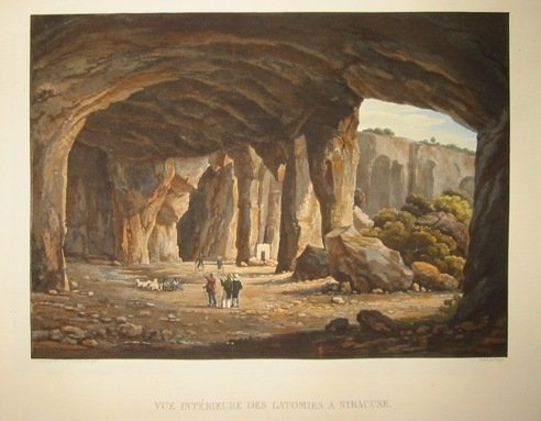 Acquatinta originale (cm. 29,5x22) tratta dal ‘Voyage pittoresque en Sicile’ di Achille Etienne Gigault de la Salle. Splendida coloritura coeva eseguita a spese dell’editore Firmin Didot. Ottimo esemplare ad ampi margini. Rara tiratura.