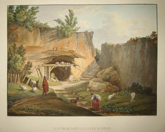 Acquatinta originale (cm. 29,5x22) tratta dal ‘Voyage pittoresque en Sicile’ di Achille Etienne Gigault de la Salle. Splendida coloritura coeva eseguita a spese dell’editore Firmin Didot. Ottimo esemplare ad ampi margini. Rara tiratura.