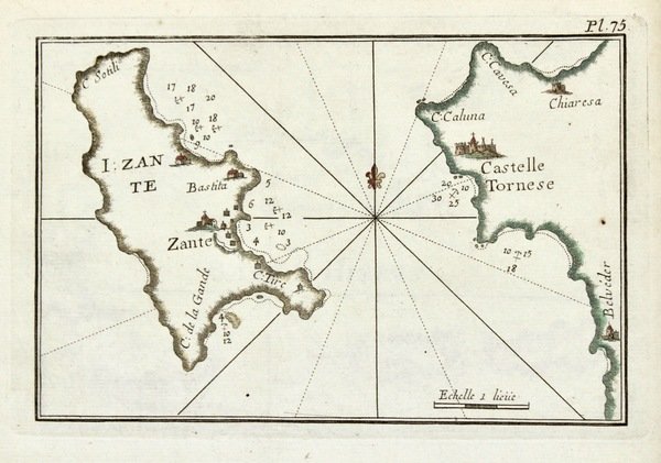 Incisione in rame, mm 130x196, dipinta a mano, tratta da "Recueuil des Principaux Plans des Ports et Rades de la Mer Mediterranee". Joseph Roux (1725-1793) è stato un celebre cartografo francese. Nel 1764 egli pubblicò un atlante del Mediterraneo in 12 grandi tavole, da cui nello stesso anno trasse l'atlante dei porti. Ottimo esemplare. <BR>