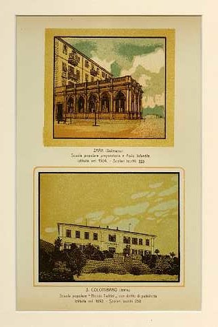 Zara (Dalmazia) Scuola popolare preparatoria e Asilo infantile istituita nel 1904. Scolari iscritti 223; S. Colombano (Istria) Scuola popolare Nicolò Taddei con diritto di pubblicità istituita nel 1892. Scolari iscritti 250.