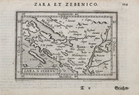 Carta geografica tratta dal edizione tedesca di ' Epitome theatri orbis terrarum ' di Abraham Ortelius, nella nuova versione dell'editore Jan Keerbergen. Pubblicata nel 1604 a Francoforte con il titolo ' Ausszug Auss Abrami Ortely Teatro.Dopo la morte di Abraham Ortelius, nel 1598, Jan Keerbergen pubblica una nuova edizione dell'Epitome ' contenente 123 mappe, tutte incise dai fratelli Ambrose e Ferdinand Arsenius, copiando le precedenti lastre intagliate da Philip Galle.Il testo è curato da Michael Coignet e conosce molteplici tirature in latino, francese, inglese tedesco ed italiano tra il 1601 ed il 1612.Incisione in rame, in ottimo stato di conservazione Miniature map taken from the German edition of the ' Epitome theatri orbis terrarum, ' firts published in ' Antwerp by Jan Keerbergen, 1601 - followed by the editions by Jan B. Vrients, 1609 and Plantin Press, 1612. This German issue was made in Frankfurt (1604), with the title ' Ausszug auss Abrahami Ortely theatro ' by Jan Keerbergen & Levinus Hulsius.In 1601 Jan Keerbergen published the first edition of a world atlas with all the plates engraved by Ambrose and Ferdinand Arsenius and with text by Michael Coignet.The maps were all nicely drawn and engraved and easily recognized, as they have wide borders showing latitude and longitude. The 123 plates were for the most part copied from those in the 1601 Jan B. Vrients’ edition of Philip Galle’s version, though not arranged in the same sequence.Etching, good condition. Cfr.